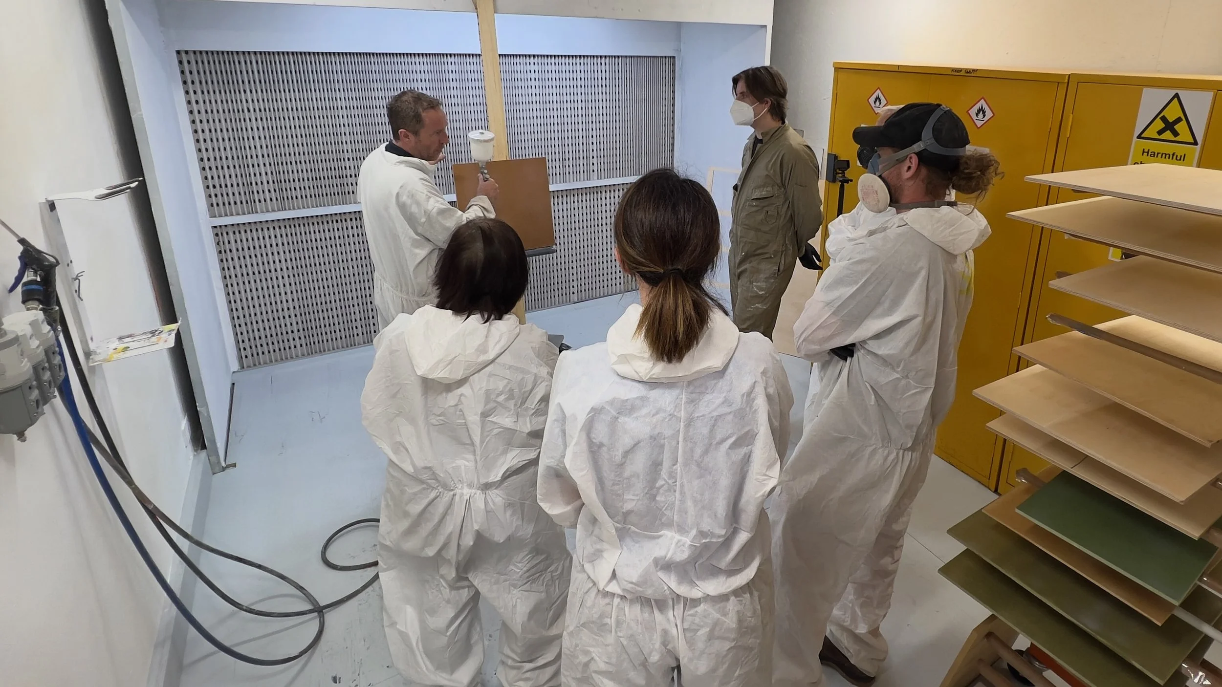To use our spray guns and air compressor you will need to be trained, however the room can be booked as a clean space for hand painting and using spray cans without the need for an induction.